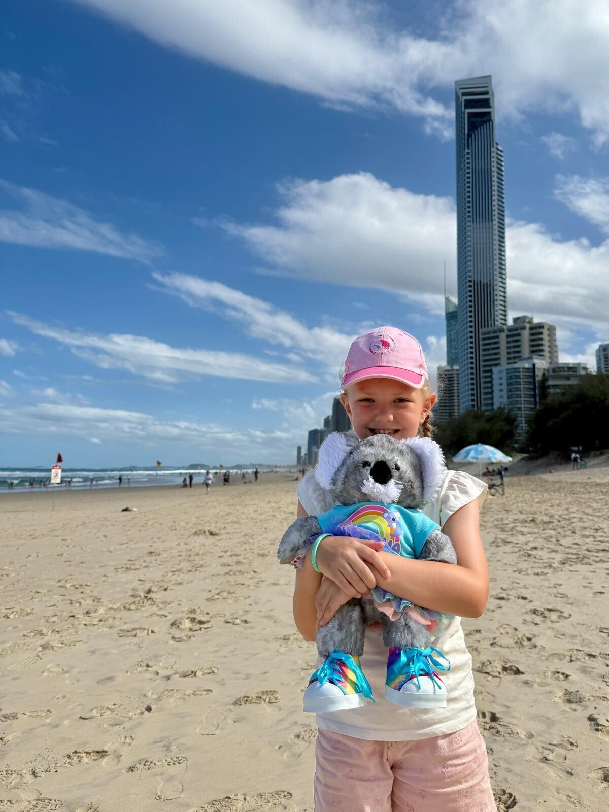 Daarna zijn we weer naar Surfers Paradise gereden want we willen nog met de Aquaduck door de stad (en het water) en Marlou wil graag in de stad nog een beer samenstellen bij Build a Bear. Als eerst hebben we de Aquaduck gedaan, en dan is hij op het land een auto en als ie het water in rijd dan wordt het een boot, je mocht zelfs even sturen (in het water). Daarna heeft Marlou die beer (eigenlijk een koala) samengesteld, kleertjes en dat soort dingen, ik was ook helemaal blij want ik had een Australisch voetbalpakje gekocht. Daarna hebben we een strandwandeling gedaan en nog een paar foto’s genomen en zijn daarna naar de camper gegaan om vervolgens bij de hungry jacks te gaan eten. Daarna zijn we de camper inleveren (met veel plezier 😜), maar hij moest bij het bedrijf wel even in elkaar gezet worden voor de foto 😂, daarna zijn we naar het hotel gereden en we zagen als eerst de drankzaak zitten en toen we de gangen liepen zagen we allemaal spuug liggen…Daarna lekker gaan slapen want morgen vroeg op!